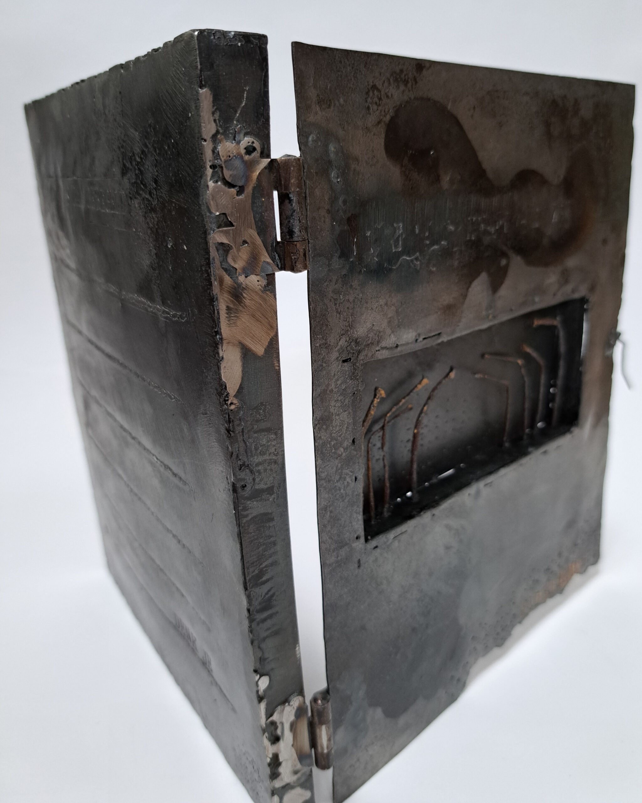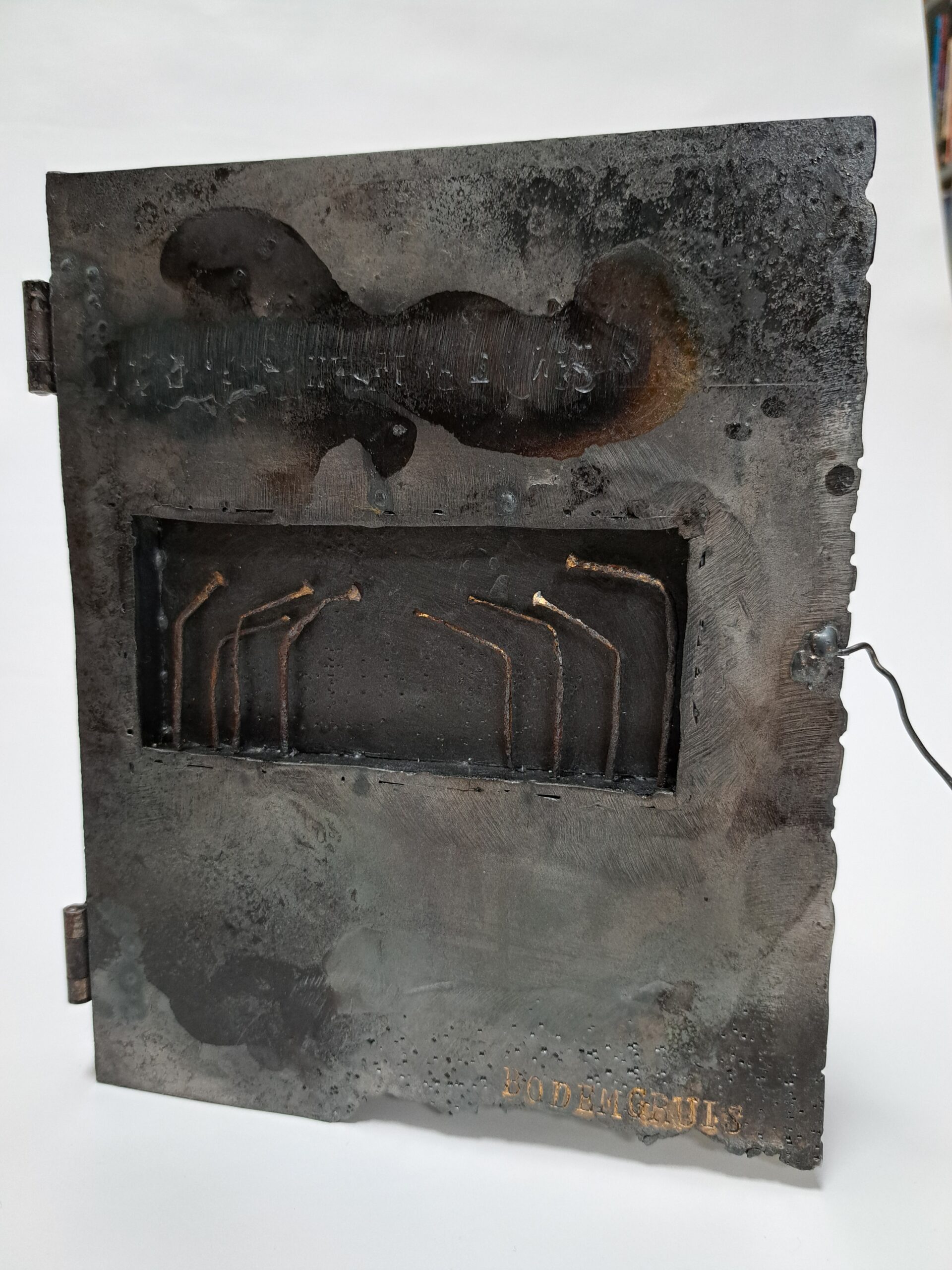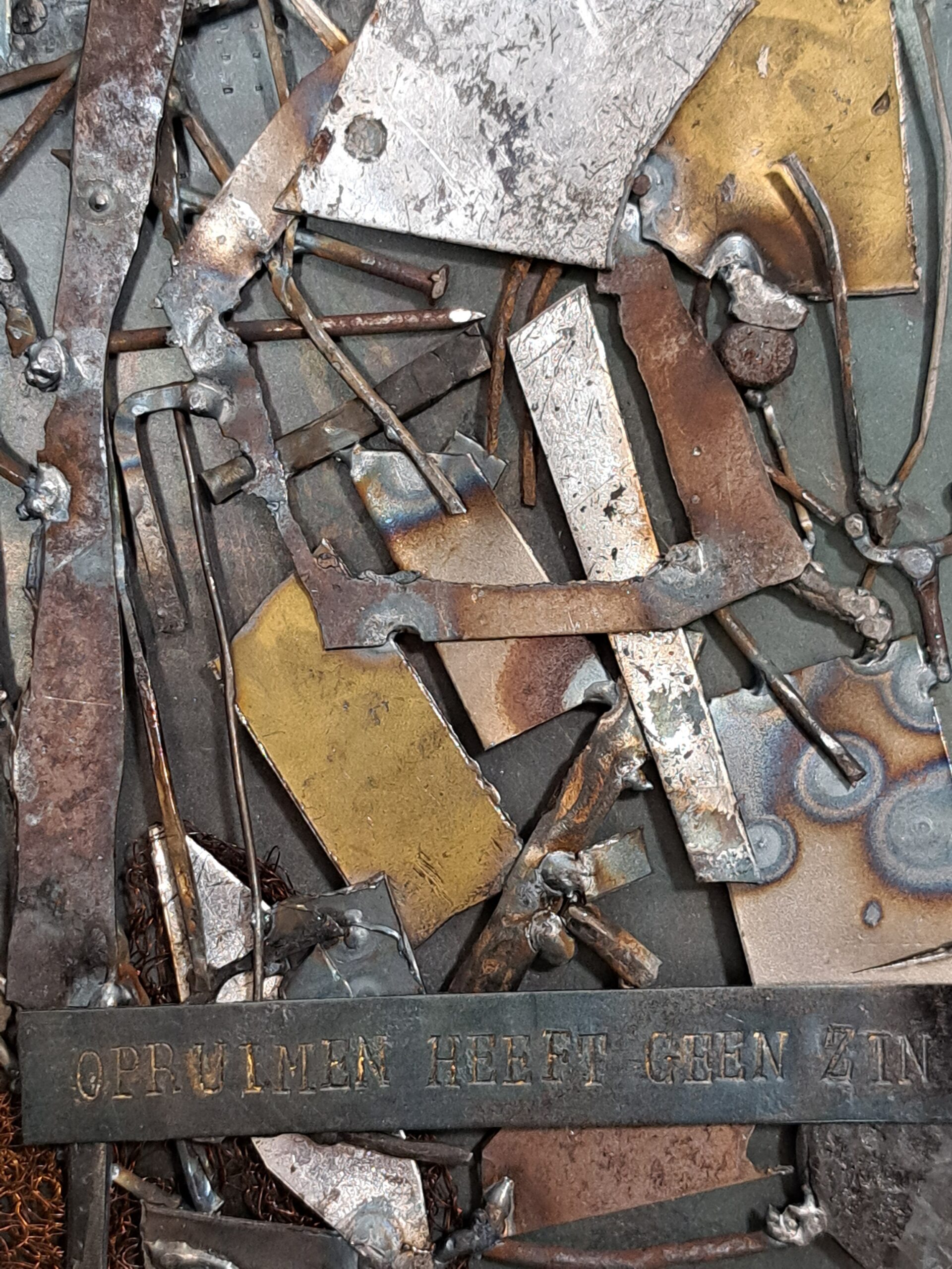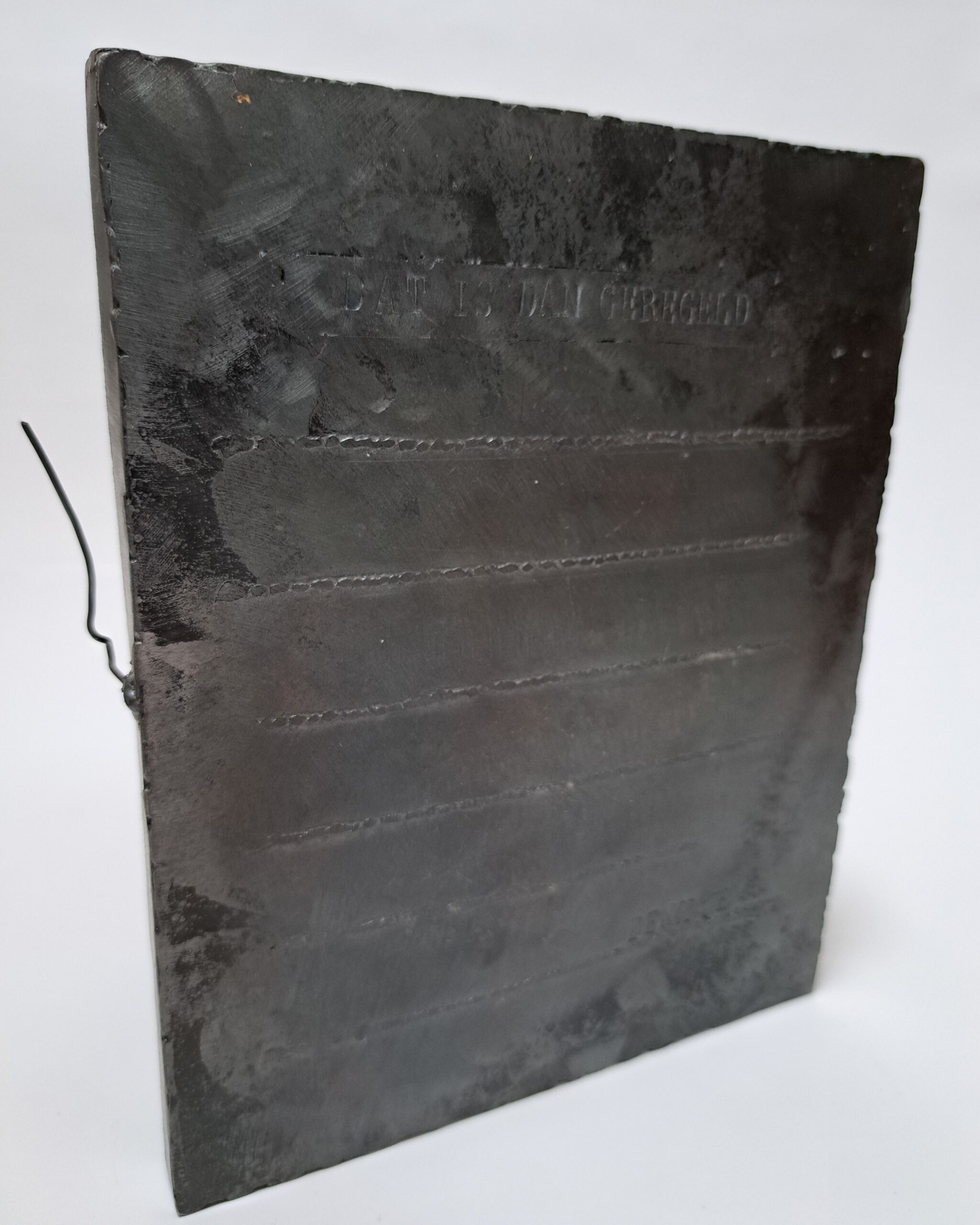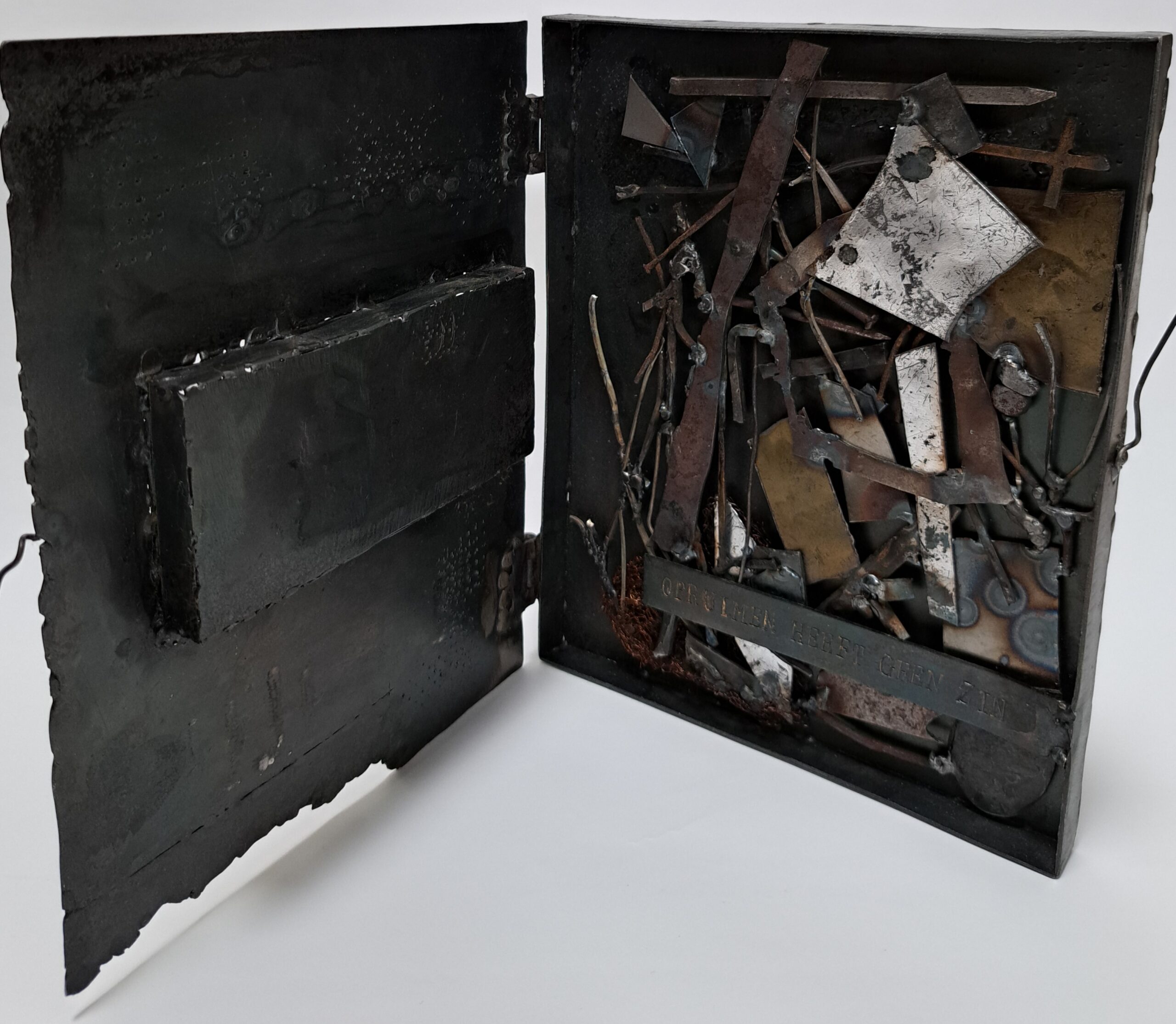 De Bodemgruis boeken zijn gemaakt van de oude staalplaten, waaruit DAF destijds haar auto’s bouwde en van de restmaterialen van haar kunstwerken op haar werkvloer.