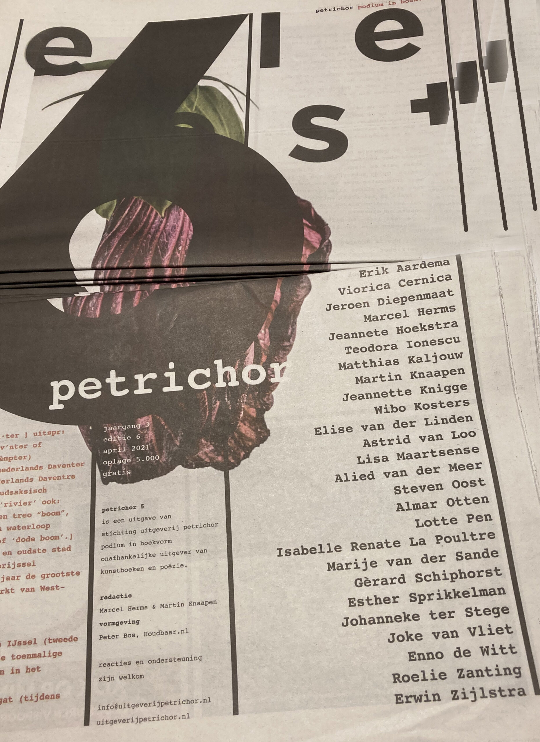 > Er stond op de voorpagina ‘petrichor 5 is een uitgave van…‘ Dat moest natuurlijk petrichor 6 zijn.
