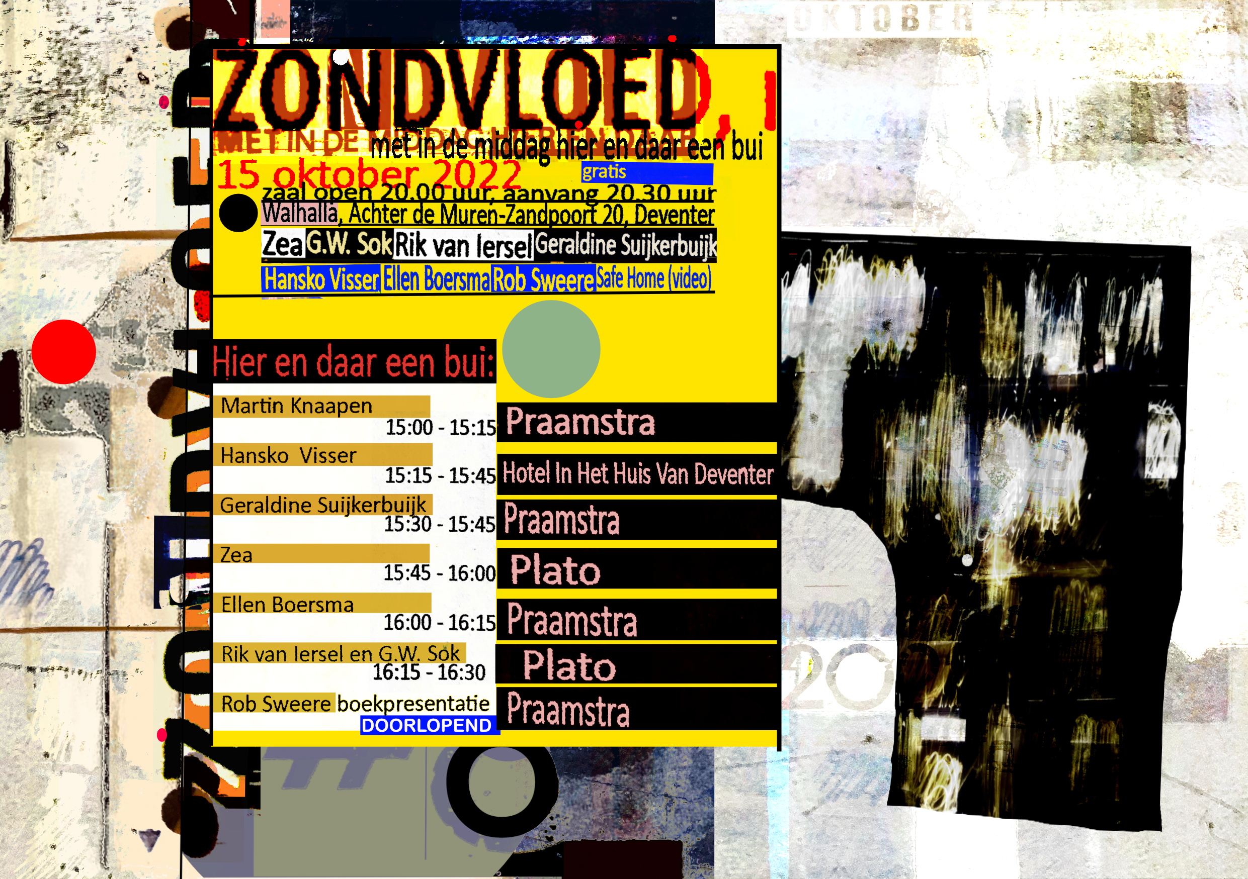 Op zaterdagavond 15 oktober 2022 vond er ’s avonds in Deventer een ZONDVLOED plaats met in de middag Hier en Daar een Bui.